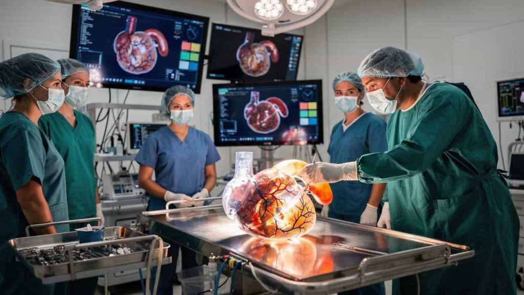 🖨️ Impressão Biomimética: Materialização do órgão em impressoras 3D de alta resolução com texturas similares aos tecidos humanos reais.