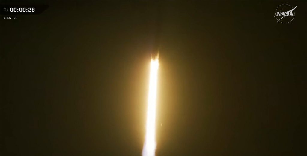 O estágio superior atingiu o ponto alvo e liberou a cápsula Dragon, levando os astronautas da Crew-12 para a órbita planejada. A cápsula então passou a flutuar livremente, iniciando sua viagem de cerca de 35 horas de forma autônoma até a ISS.